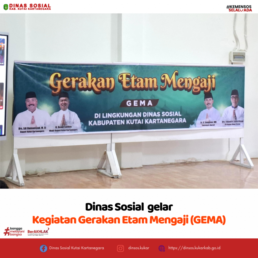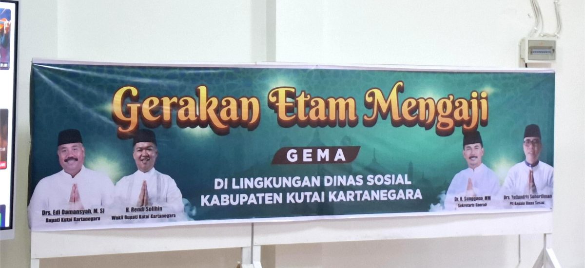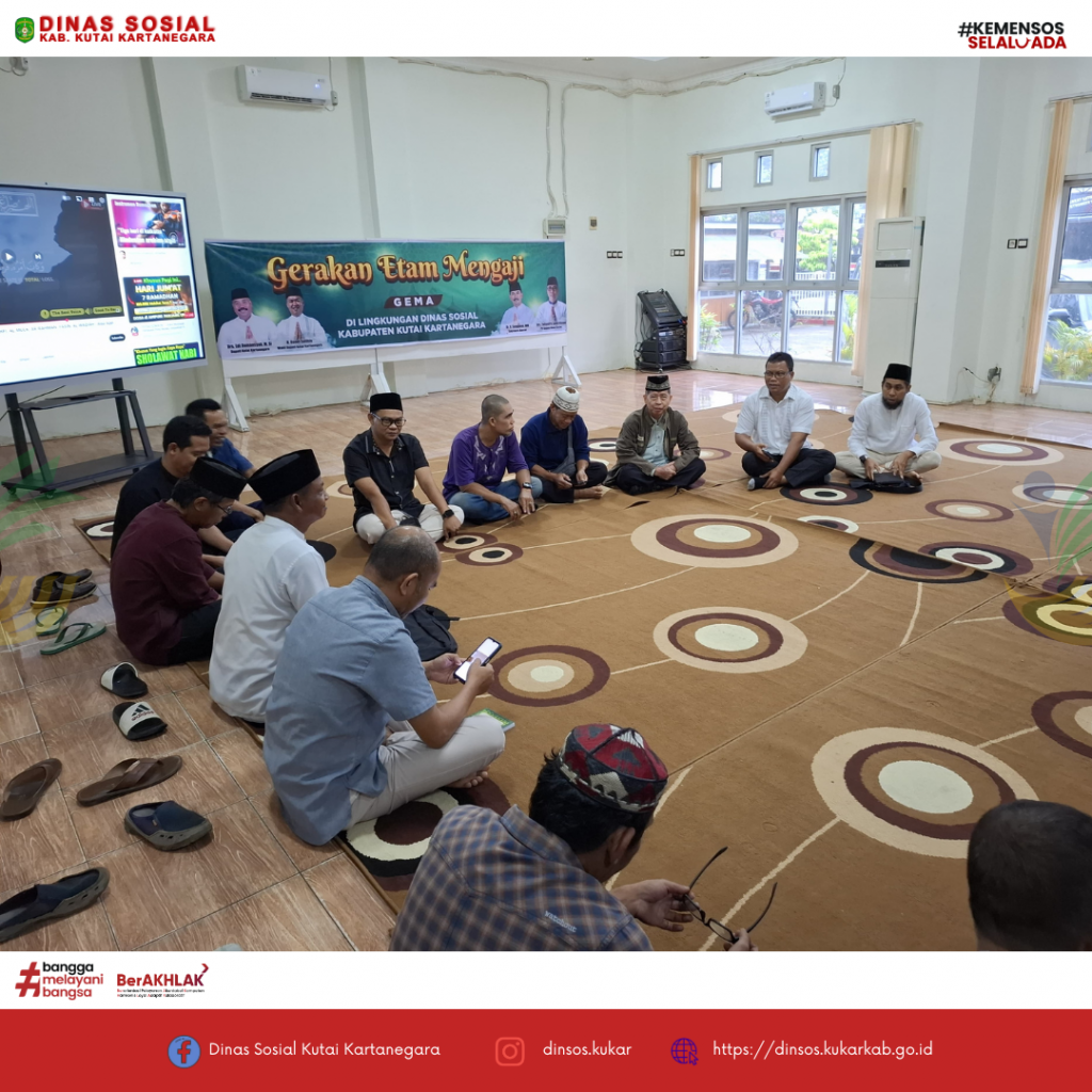 Tenggarong – Dinas Sosial (DINSOS) Kabupaten Kutai Kartanegara (KUKAR) kembali menyelenggarakan kegiatan rutin Gerakan Etam Mengaji (GEMA) setiap hari Jum’at pagi sebelum memulai aktivitas pekerjaan kantor. Kegiatan yang diusung oleh Bupati Kukar, Edi Damansyah, ini bertujuan untuk meningkatkan nilai-nilai spiritual dan moral di lingkungan kerja pemerintahan.