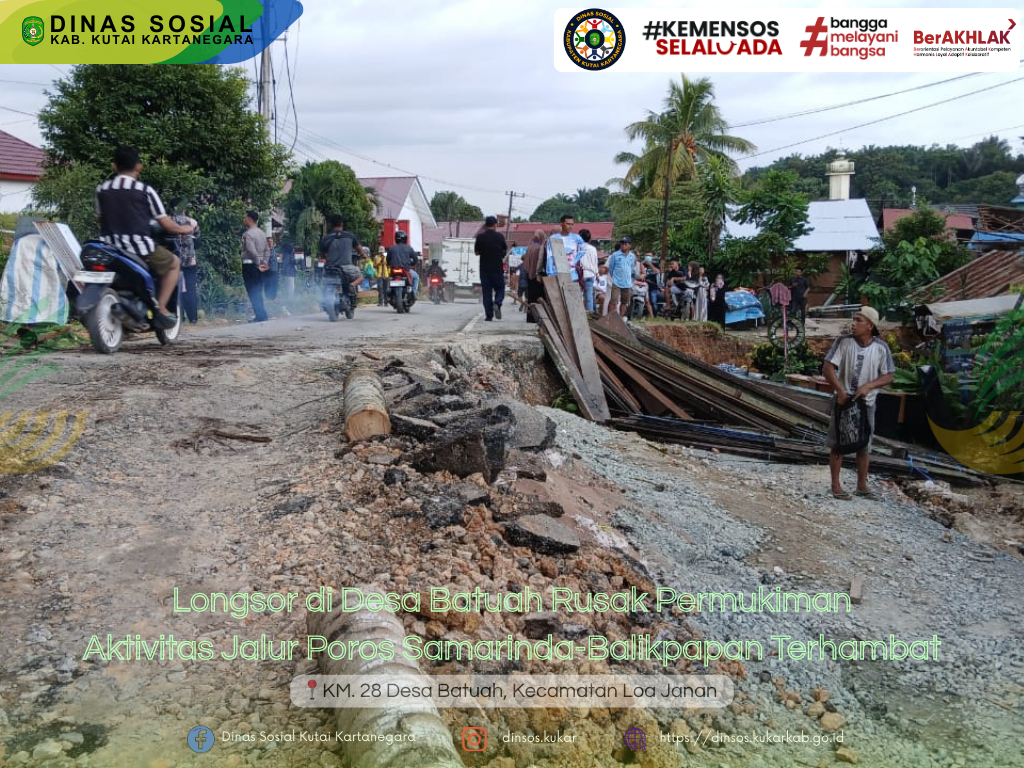 Kutai Kartanegara – Bencana longsor dan amblesnya tanah terjadi di Desa Batuah, Kecamatan Loa Janan, mengakibatkan kerusakan rumah warga serta gangguan serius terhadap infrastruktur jalan nasional. Peristiwa ini mulai memburuk sejak Kamis, 15 Mei 2025, hingga menyebabkan beberapa rumah mengalami kerusakan parah serta ambles di sepanjang KM 28, jalur poros Samarinda-Balikpapan.