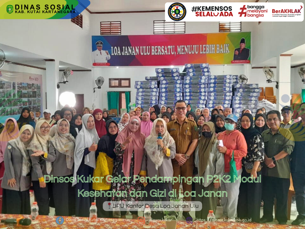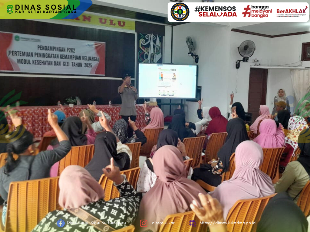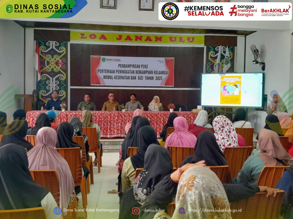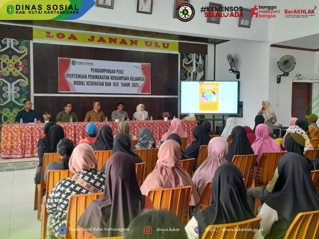 Kutai Kartanegara – Dinas Sosial Kabupaten Kutai Kartanegara (Dinsos Kukar) menggelar pendampingan Pertemuan Peningkatan Kemampuan Keluarga (P2K2) Modul Kesehatan dan Gizi bagi Keluarga Penerima Manfaat (KPM) Program Keluarga Harapan (PKH) di Kecamatan Loa Janan. Kegiatan berlangsung pada 20 Mei 2025, bertempat di Balai Pertemuan Umum (BPU) Kantor Desa Loa Janan Ulu, dan dihadiri oleh 50 orang KPM.