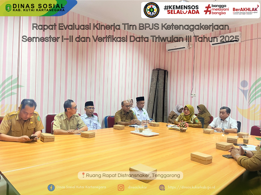 Tenggarong – Dalam rangka evaluasi kinerja dan verifikasi data ketenagakerjaan tahun berjalan, Dinas Transmigrasi dan Tenaga Kerja Kabupaten Kutai Kartanegara (DISTRANSNAKER Kukar) akan menyelenggarakan Rapat Pembahasan Evaluasi Kerja Tim BPJS Ketenagakerjaan Tahun 2025, sekaligus verifikasi data Triwulan III. Kegiatan ini digelar pada Senin, 21 Juli 2025, pukul 10.30 WITA hingga selesai, di Lantai II Kantor DISTRANSNAKER, Jalan AP. Pranoto Sukarame No. 85, Tenggarong.