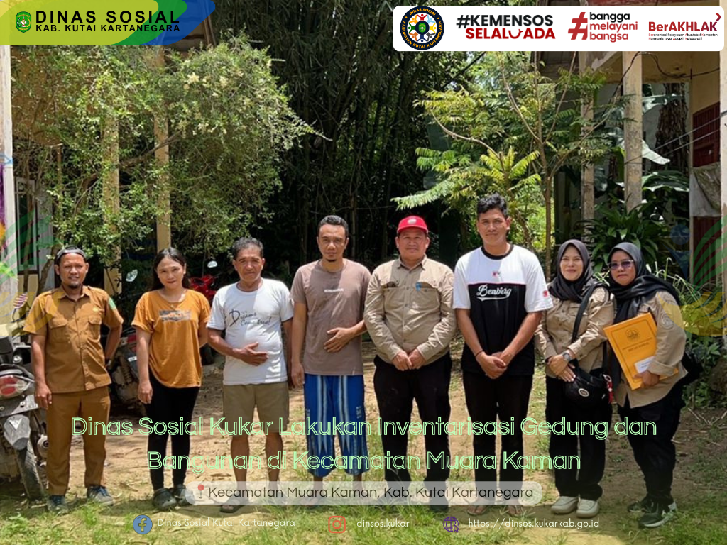 Muara Kaman, 23 September 2025 — Dinas Sosial Kabupaten Kutai Kartanegara melaksanakan kegiatan inventarisasi Barang Milik Daerah (BMD) kategori KIB C berupa gedung dan bangunan di Kecamatan Muara Kaman pada tanggal 22 hingga 23 September 2025. Kegiatan ini merupakan tindak lanjut dari Bimbingan Teknis Inventarisasi BMD Tahun 2025 yang diselenggarakan oleh Badan Pengelola Keuangan dan Aset Daerah (BPKAD) Kukar di Hotel Harris Samarinda pada akhir Agustus lalu.