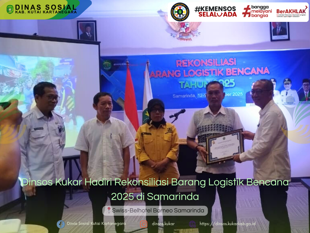 SAMARINDA – Dalam rangka memperkuat sistem pengelolaan bantuan kebencanaan yang akuntabel dan tertib, Dinas Sosial Kabupaten Kutai Kartanegara menghadiri kegiatan Rekonsiliasi Barang Logistik Bencana Tahun 2025 yang digelar pada Rabu–Kamis, 12–13 November 2025, bertempat di Swiss-Belhotel Borneo Samarinda, Kalimantan Timur.