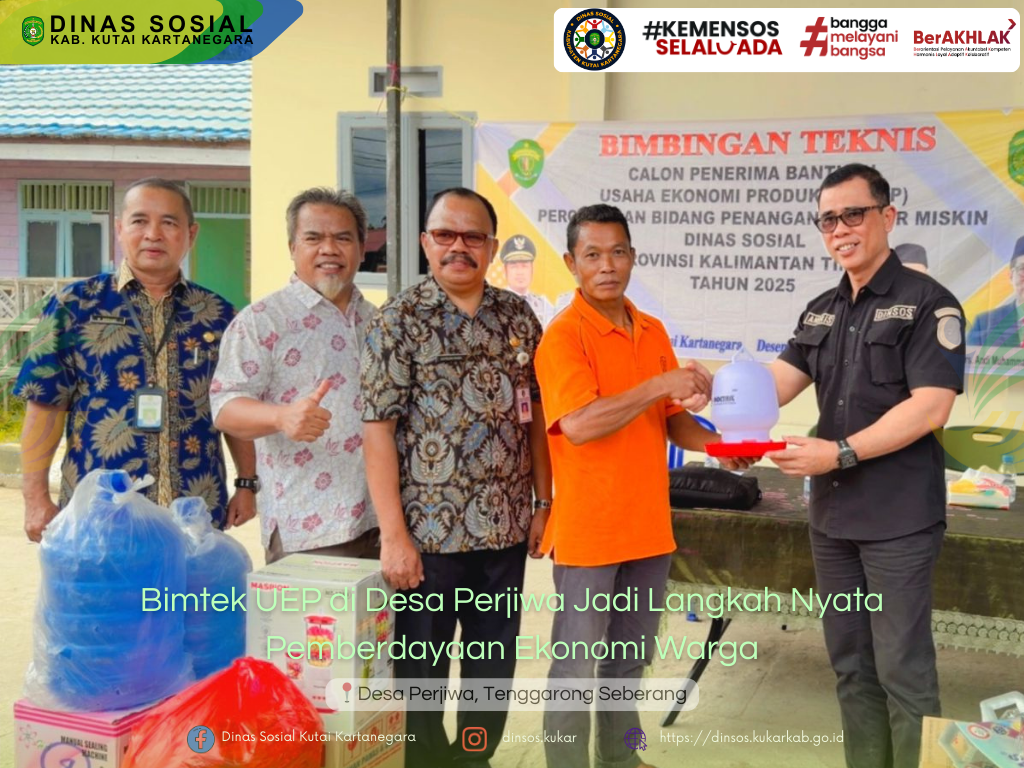 TENGGARONG SEBERANG, 4 Desember 2025 – Pemerintah Provinsi Kalimantan Timur melalui Dinas Sosial Kab. Kutai Kartanegara terus memperkuat upaya pemberdayaan ekonomi masyarakat miskin dan rentan. Kali ini, sebanyak 83 warga Desa Perjiwa menerima Bantuan Usaha Ekonomi Produktif (UEP) Perorangan Tahun 2025, yang disalurkan bersamaan dengan kegiatan Bimbingan Teknis (Bimtek) di Balai Desa Perjiwa.