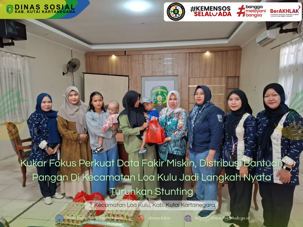 Loa Kulu – Pemerintah Kabupaten Kutai Kartanegara melalui Dinas Sosial terus menegaskan komitmennya dalam menurunkan angka stunting. Salah satu langkah strategis yang ditempuh adalah penguatan basis data fakir miskin agar lebih akurat dan terintegrasi, sekaligus menyalurkan bantuan pangan bagi keluarga berisiko stunting.