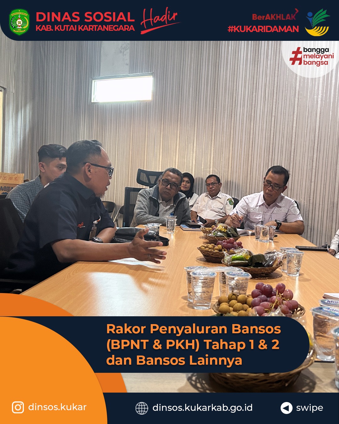 Tenggarong, 10 Mei 2023Dinas Sosial melakukan rapat koordinasi penyaluran: Bantuan Sosial (BPNT dan PKH) Tahap